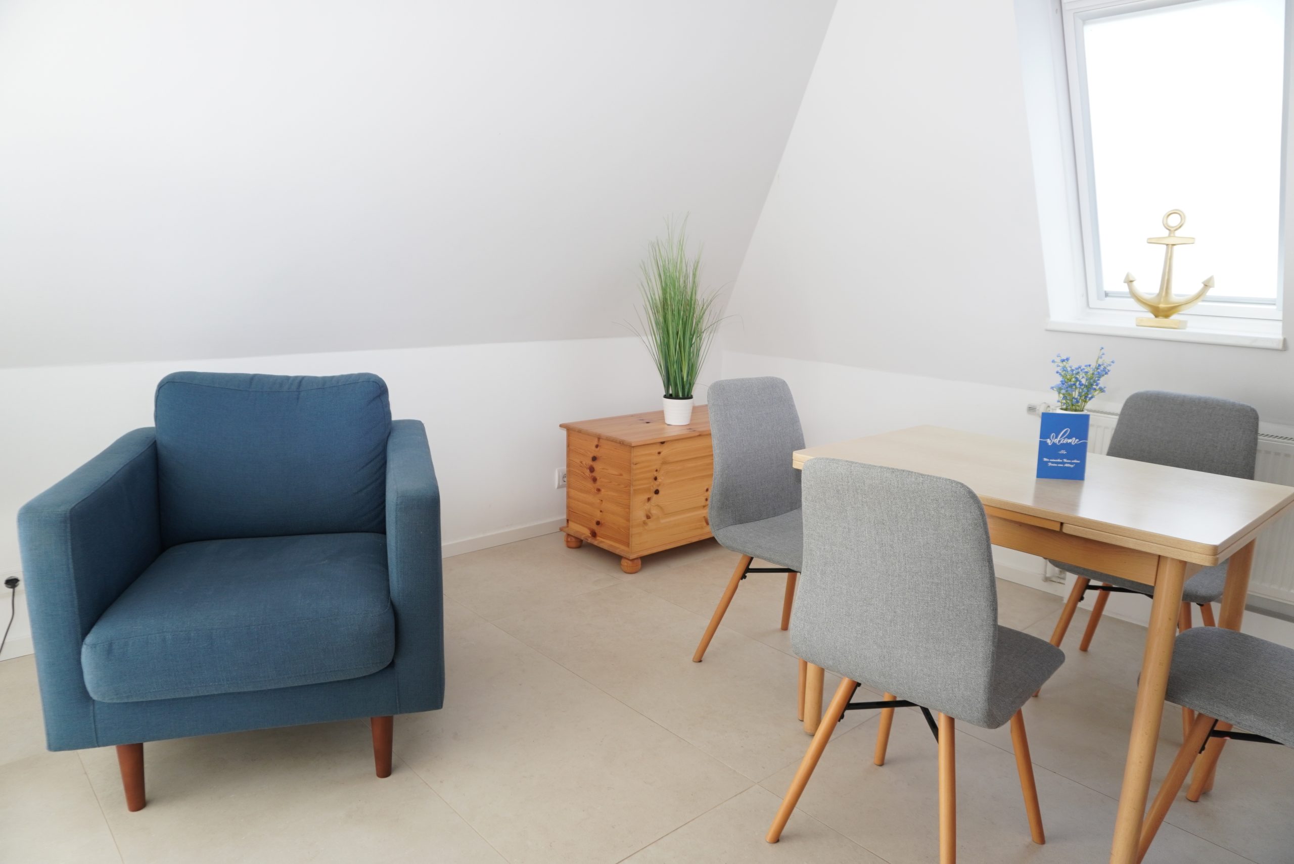 Die Ferienwohnung bietet auf 35 Quadratmetern alles, was Ihren Urlaub unkompliziert macht. Der gemütliche Wohnzimmerbereich verfügt über eine Couch und einen Sessel, sodass Sie einen Platz zum Abschalten finden. In zwei Schlafzimmern können vier Personen erholsamen Schlaf finden- durch die ruhige Sackgassenlage ist auch Schlafen bei offenem Fenster problemlos möglich. Die Bettwäsche und Handtücher sind von hoher Qualität, sie werden durch einen professionellen Reinigungsdienst gestellt. Das Bad mit Tageslicht ist hell gestaltet und bietet mit einer ebenerdigen Dusche und dem Rainshower- Duschkopf die richtige Umgebung für einen gelungen Start in den Tag. Der Balkon ist nach Südwesten ausgerichtet und ist der richtige Platz, um die frische und gesunde Nordseeluft zu genießen und die Seele baumeln zu lassen.