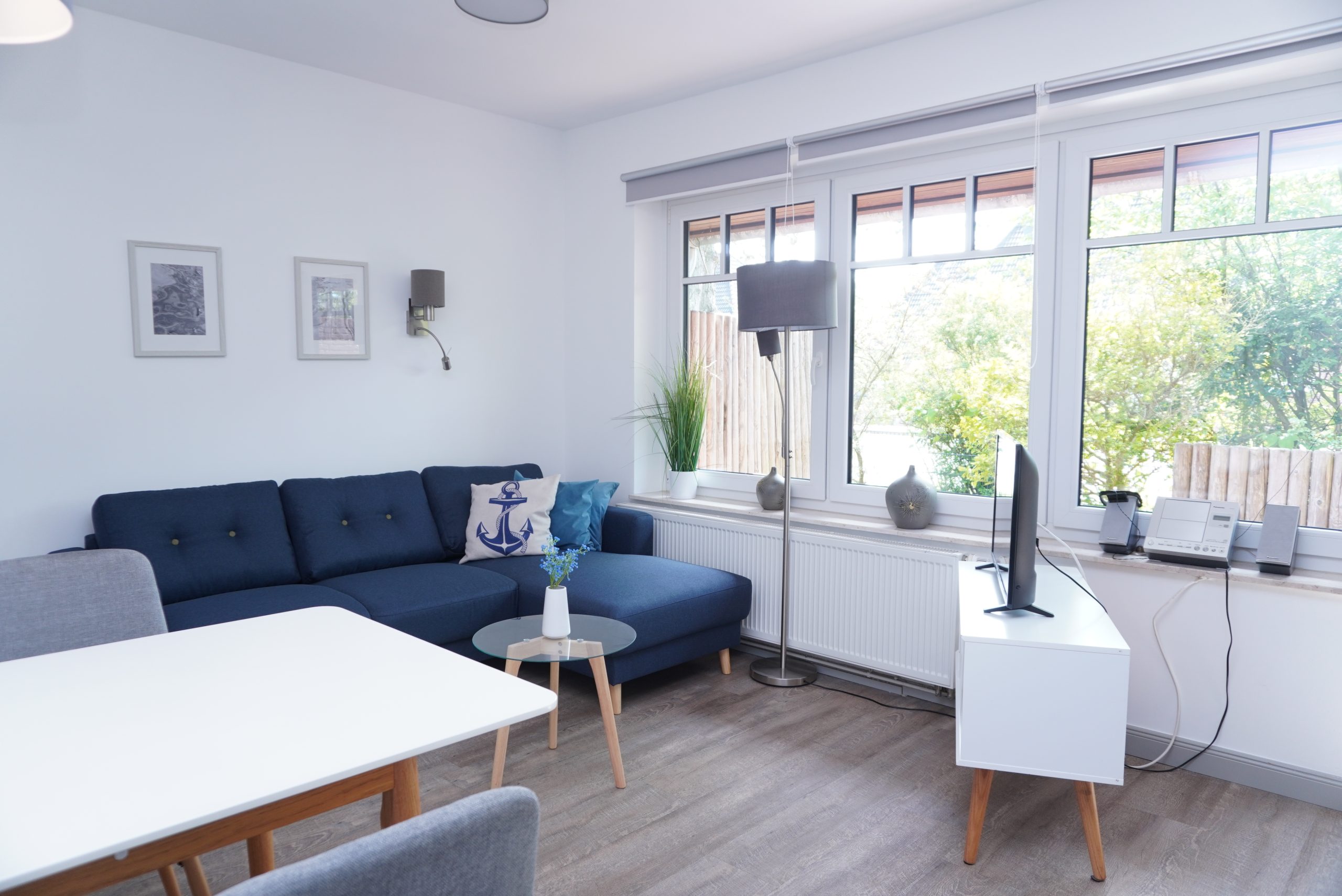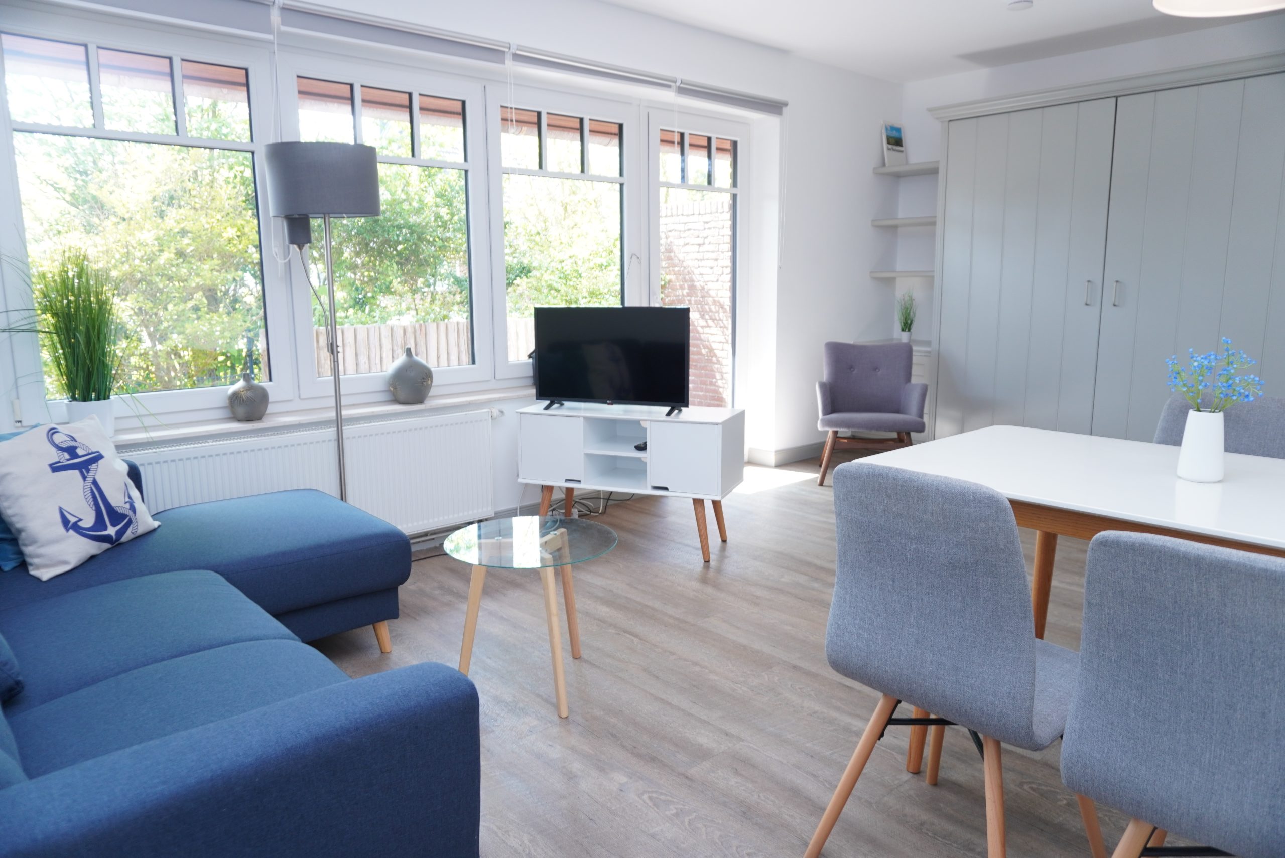 Die Ferienwohnung bietet auf 45 Quadratmetern alles, was Ihren Urlaub unkompliziert macht. Der gemütliche Wohnzimmerbereich verfügt über eine Couch und einen Sessel, sodass Sie einen Platz zum Abschalten finden. Die Wohnung verfügt über ein Schlafzimmer- durch die ruhige Sackgassenlage ist auch Schlafen bei offenem Fenster problemlos möglich. Zwei weitere Personen können in den ausklappbaren Schrankbetten im Wohnzimmer schlafen. Die Bettwäsche und Handtücher sind von hoher Qualität, sie werden durch einen professionellen Reinigungsdienst gestellt. Das Bad ist funktional gestaltet. Die Terrasse ist nach Südwesten ausgerichtet und ist der richtige Platz, um die frische und gesunde Nordseeluft zu genießen und die Seele baumeln zu lassen.